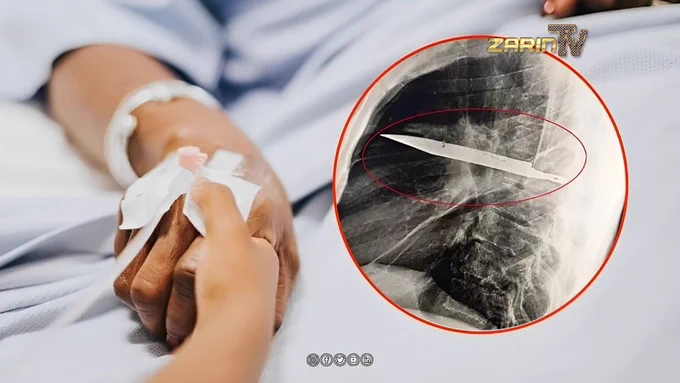 اسکن طبی نشان داد یک چاقو از حمله ای که ۸ سال پیش اتفاق افتاده بود، در سینه او فرو رفته است.